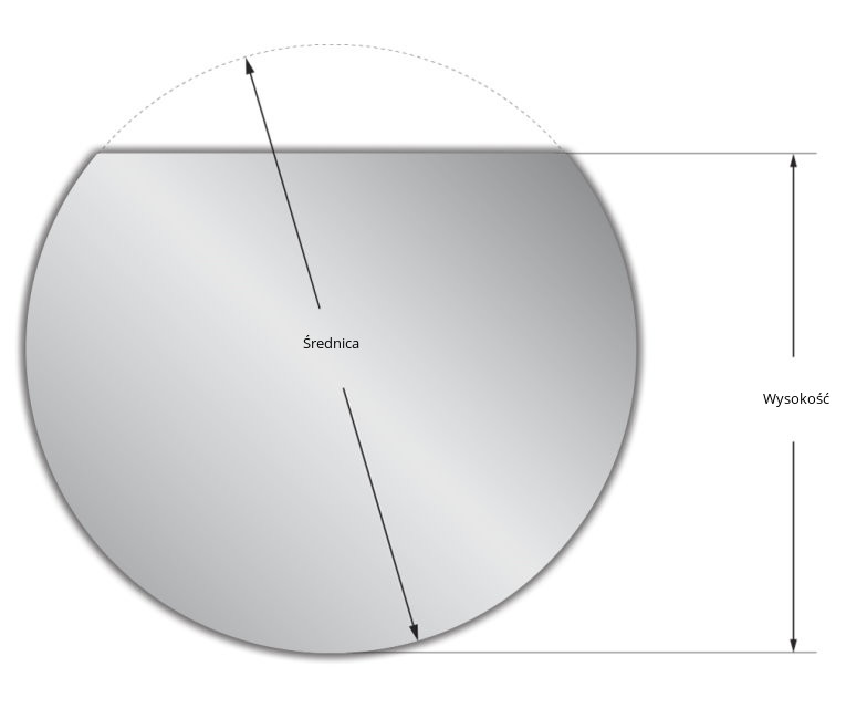 Wymiary lustra są oparte o dwa parametry: Średnicę i Wysokość. Średnica to średnica oryginalnego okrągłego lustra, z którego Lustro Moon Bowl jest wycięte. Jeśli wysokość jest równa połowie średnicy, lustro Moon Bowl będzie miało kształt półkola.