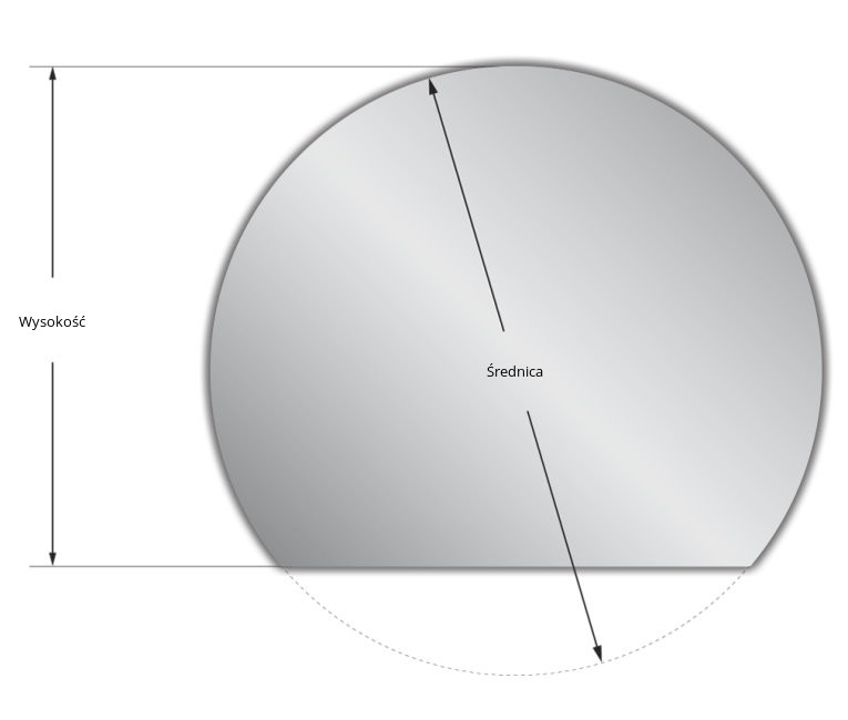 Wymiary lustra są oparte o dwa parametry: Średnicę i Wysokość. Średnica to średnica oryginalnego okrągłego lustra, z którego Lustro Moon Rise jest wycięte. Jeśli wysokość jest równa połowie średnicy, lustro Moon Rise będzie miało kształt półkola.